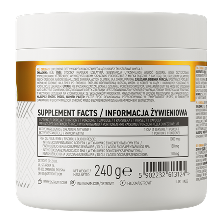 OstroVit Omega 3 tiekia nepakeičiamąsias riebalų rūgštis patogiose minkštose kapsulėse — kiekvienoje kapsulėje yra 1000 mg žuvų aliejaus su 180 mg EPA ir 120 mg DHA. Tai nepakeičiamosios riebalų rūgštys, kurių organizmas pats negali gaminti, tačiau kurios yra gyvybiškai svarbios normaliam širdies, smegenų ir pažintinių funkcijų veikimui. Galima įsigyti Omegafit.ee internetinėje parduotuvėje Pärnu mieste, Estijoje, pristatymas per 1–2 dienas į Estiją, Suomiją, Latviją ir Lietuvą.