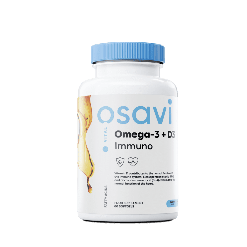„Osavi Omega-3 + D3 Immuno“ siūlo vieną didžiausių omega-3 dozių rinkoje – 1300 mg omega-3 riebalų rūgščių ir 2000 TV vitamino D3 vienoje porcijoje (2 kapsulėse). Žuvų taukai yra koncentruoti iš ančiuvių, sardinių ir skumbrių, be teršalų. Citrinų skonio kapsulėje yra kalcio. Galima įsigyti „Omegafit.ee“ internetinėje parduotuvėje Pernu, pristatymas per 1–2 dienas visoje Estijoje.