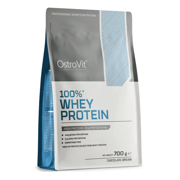 OstroVit 100% Whey Protein 700 g yra 70 % baltymų turintis išrūgų baltymo milteliai, papildyti BCAA ir EAA aminorūgštimis. Mažo riebalų kiekio produktas, prieinamas įvairiomis skoniais. Galima įsigyti „Omegafit.ee” internetinėje parduotuvėje iš Pärnu, pristatymas visoje Lietuvoje per 1–2 dienas.