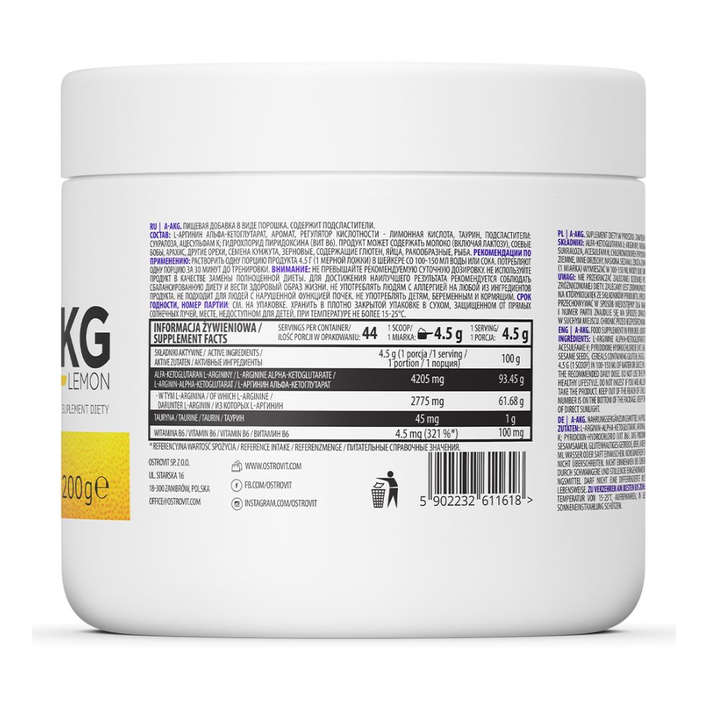 OstroVit A-AKG 200g – tai maisto papildas, skirtas pačiems reikalavusčiaus sportininkams. Didelis preparato grynumas ir pažangi mikronizacija užtikrina aukščiausio biologinio prieinamumo arginino alfa-ketoglutarato formą.