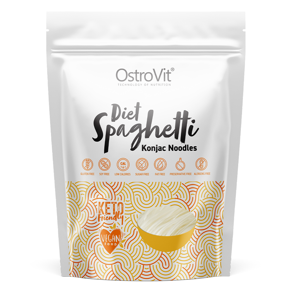 „OstroVit“ dietiniai spagečiai su konjaku. Natūralus produktas, kurio pagrindinė sudedamoji dalis yra konjako gliukomananas – vandenyje tirpi skaidula, gaunama iš konjako augalo šaknų. Produkte nėra krakmolo, baltymų, kviečių, glitimo ir cukraus. Jis taip pat mažai kaloringas, todėl puikiai tinka žmonėms, besilaikantiems keto ir mažai angliavandenių turinčios dietos, taip pat tiems, kurie rūpinasi savo sveikata ir figūra. Dėl didelio skaidulų kiekio jis ilgai palaiko sotumo jausmą. „OstroVit“ dietiniai spagečiai su konjaku yra 100 % augalinės kilmės, todėl tinka veganams ir vegetarams. Jis taip pat neturi glitimo, todėl netoleruojantys glitimo ar turintys alergiją asmenys gali jį naudoti virtuvėje ruošdami mėgstamus patiekalus. Makaronai neturi ypatingo kvapo ar skonio, todėl puikiai tinka padažams, daržovėms ir mėsai. Jie lengvai sugeria skonius ir prieskonius. Taip pat nereikia gaišti laiko gaminant. 100 g gatavo produkto yra tik 6 kcal , todėl jis idealiai tinka tiems, kurie laikosi dietos. Tai puiki alternatyva sunkiems tradiciniams makaronams.