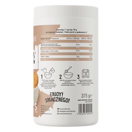 Baltymais praturtintas sausainių mišinys, kuriame vienoje porcijoje yra iki 31 % baltymų ir nėra pridėtinio cukraus. OstroVit High Protein Cookies galima įsigyti Omegafit.ee internetinėje parduotuvėje iš Pärnu, pristatymas per 1–2 dienas į Lietuvą.