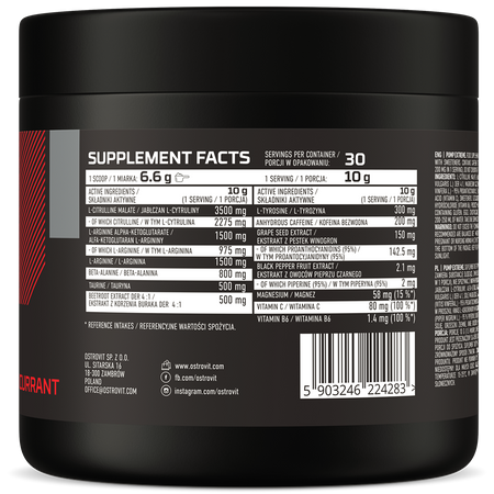 „OstroVit Pump Extreme“ neabejotinai yra visavertis maisto papildas. 13 sinergiškai vienas kitą papildančių ingredientų leidžia pasiekti visus tikslus, kuriuos išsikėlė kiekvienas sunkiai dirbantis sportininkas. „OstroVit Pump Extreme“ dėka pasiekti savo tikslus dar niekada nebuvo taip paprasta.