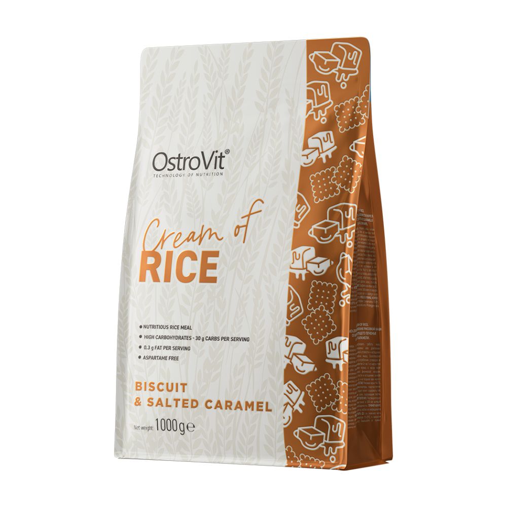 OstroVit Cream of Rice“ 1 kg yra ryžių košė. Šis naujas produktas leidžia greitai ir lengvai papildyti reikiamą angliavandenių kiekį savo mityboje. Košė pirmiausia buvo sukurta žmonėms, ieškantiems skanių užkandžių idėjų po treniruotės. OstroVit Cream of Rice“ su natūraliu skoniu tinka veganams ir joje yra tik natūraliai esančių cukrų. Kodėl turėtumėte valgyti ryžių košę? Tai skanus ir maistingas užkandis, kuriame gausu angliavandenių. Pagrindinė jo sudedamoji dalis yra ryžių miltai, kuriuose gausu B grupės vitaminų, taip pat magnio, cinko ir geležies. OstroVit Cream of Rice“ yra idealus būdas kovoti su raumenų nuovargiu po treniruotės. Košėje esantys angliavandeniai atkuria normalius raumenų susitraukimus, taip palaikydami jų atsistatymą. Rinkitės mūsų ryžių košę, jei:
